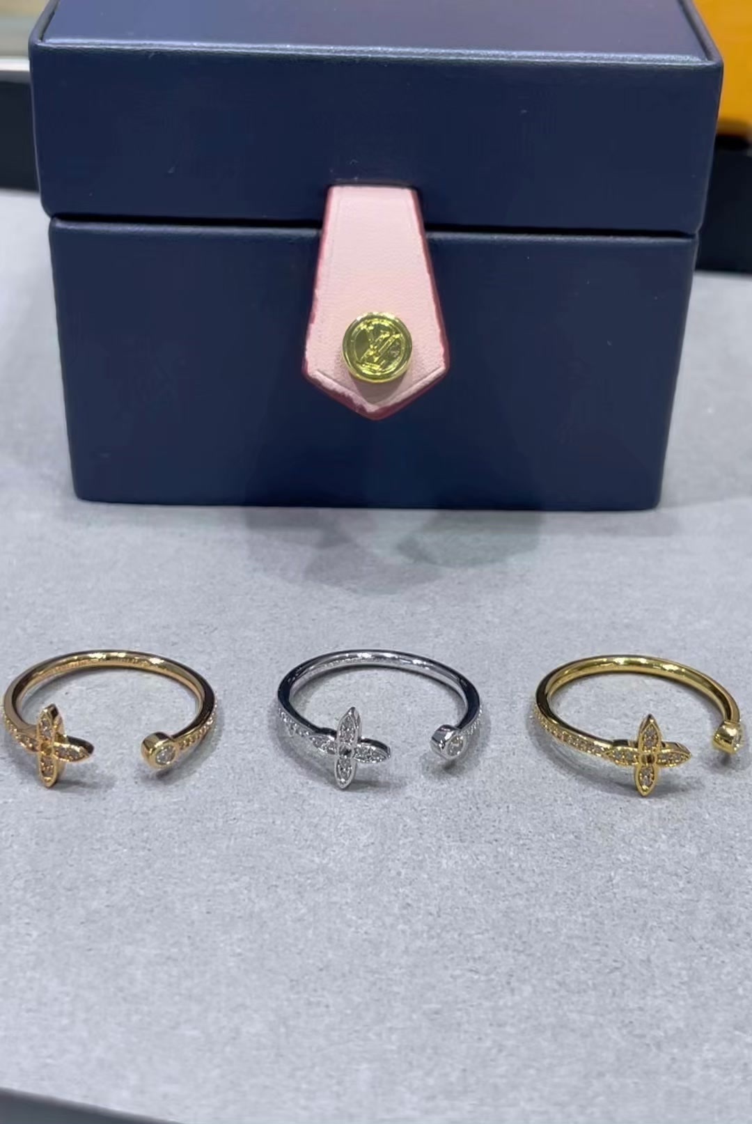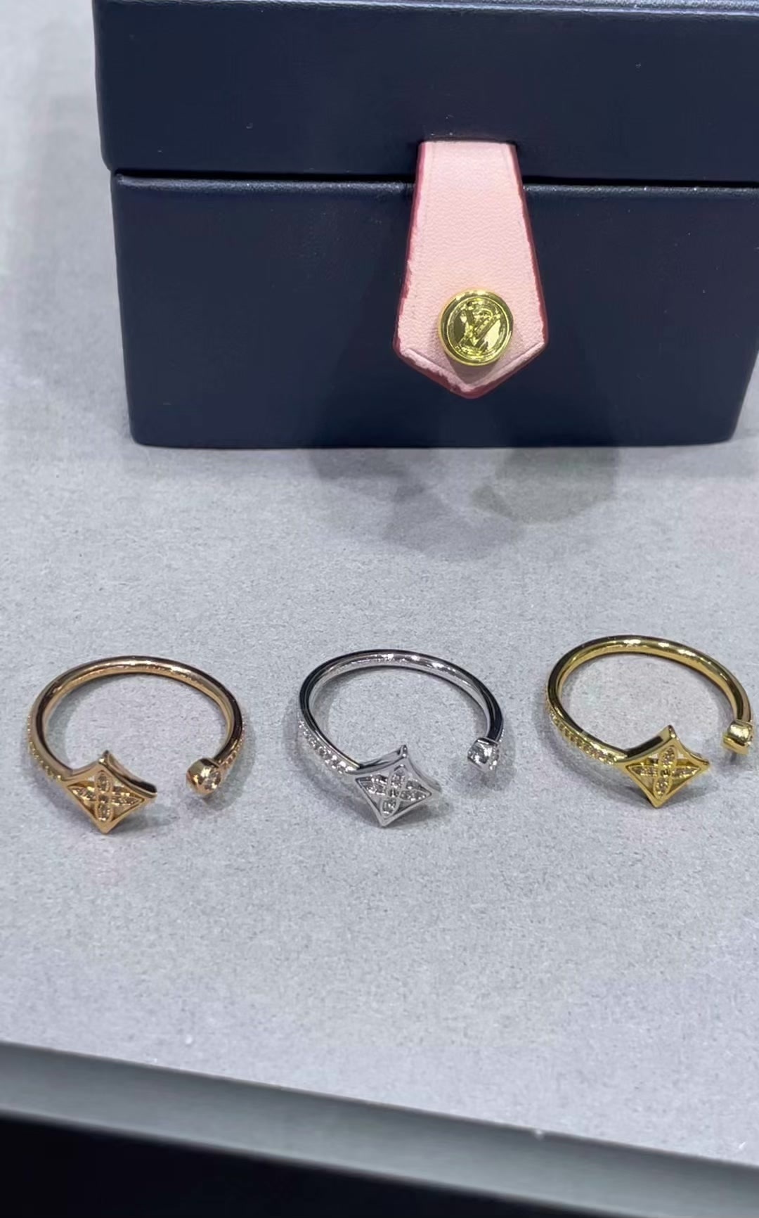 LV方形单花满钻戒指